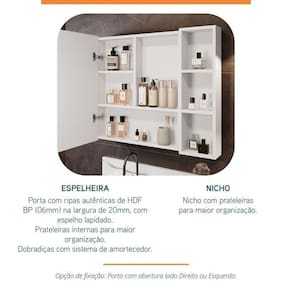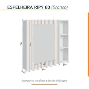 1x Espelheira para Banheiro Ripy 80cm Branco Largura: 80 cm Altura: 70 cm Peso: 14 kg Profundidade: 10,3 cm Necessita Montagem: Não