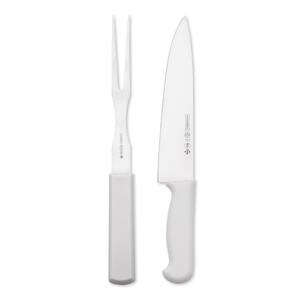 Conjunto Para Churrasco Branco Master Line Mundial 2 Peças As facas da linha masterline 7800 são destinadas ao público doméstico e profissional. Seu cabo foi desenhado para uma ergonomia perfeita, possibilitando movimentos variados com menor esforço. Além disso, possui proteção antimicrobial sanitized e cabo texturizado que ajuda na aderência e limpeza. Conjunto faca e garfo, composto por uma faca carne de 8" que garante segurança e precisão no corte e garfo de 7" para maior estabilidade e firmeza no corte. Cor: branco Material: aço inox Medidas da embalagem: 42cm comp. X 2cm alt. X 15cm larg. Peso: 0,290kg Marca: Não Informado Ean: 7891060036138