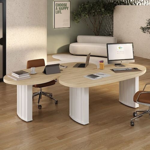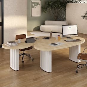 Eleve o padrão do seu ambiente de trabalho com o Conjunto para Escritório 2 Mesas Organic. Fabricado em tamburato de alta qualidade, este conjunto combina design moderno com funcionalidade excepcional.