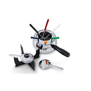 Conjunto para Fondue Inox 11 Peças Brinox Ref: 1241/116 O Conjunto para Fondue tem Caçarola de Aço Inoxidável e é ideal para o preparo de Fondue de Carne, pois concentra mais o calor , fazendo com que o óleo fique no ponto ideal para a fritura. A Caçarola tem cabo longo e capacidade para 1,35 Litros. Completo, vem com um Separador de Garfos, uma Chapa Difusora de Alumínio, 1 Suporte Epóxi e 1 Fogareiro de Aço Inox, Menor e com Abafador. Além disso, acompanha 6 Garfos com cabos coloridos. Faz das ocasiões mais que especiais. - 01 Caçarola Ø 16 cm - Aço Inox - Cabo Longo - 1,35 Litros - 01 Separador de Garfos - Aço Inox - 01 Chapa Difusora de Alumínio - Ø 125 x 2 mm - 06 Garfos - 22 cm - Cabos Coloridos - 01 Suporte Epóxi - 01 Fogareiro Aço Inox Menor com Abafador Material: Aço Inox