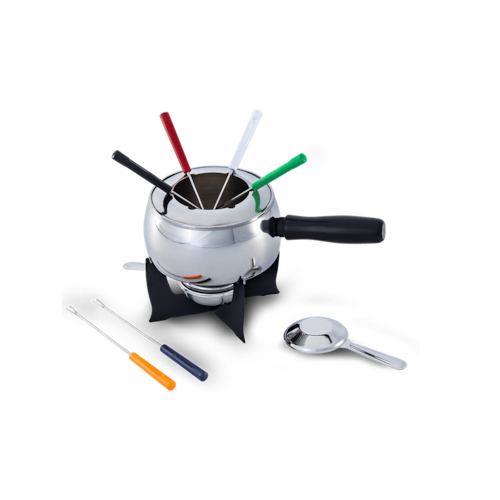 O Conjunto para Fondue tem Caçarola de Aço Inoxidável e é ideal para o preparo de Fondue de Carne, pois concentra mais o calor , fazendo com que o óleo fique no ponto ideal para a fritura. A Caçarola tem cabo longo e capacidade para 1,35 Litros. Completo, vem com um Separador de Garfos, uma Chapa Difusora de Alumínio, 1 Suporte Epóxi e 1 Fogareiro de Aço Inox, Menor e com Abafador. Além disso, acompanha 6 Garfos com cabos coloridos. Faz das ocasiões mais que especiais!