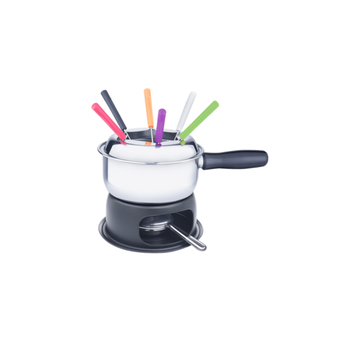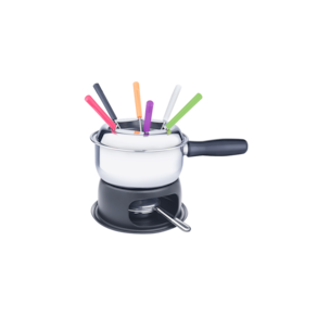 O Conjunto para Fondue tem Caçarola de Aço Inoxidável e é ideal para o preparo de Fondue de Carne, pois concentra mais o calor , fazendo com que o óleo fique no ponto ideal para a fritura. A Caçarola tem cabo longo e capacidade para 1,25 Litros. Completo, vem com um Separador de Garfos, uma Chapa Difusora de Alumínio, 1 Suporte Epóxi, 1 Fogareiro de Aço Inox, Menor e com Abafador e 1 Base Epóxi. Além disso, acompanha 6 Garfos com cabos coloridos. Faz das ocasiões mais que especiais!
