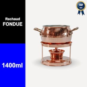 Descubra a elegância e o sabor único de um verdadeiro fondue com o Conjunto para Fondue Rechaud em Cobre Puro Artesanal 1400ml.