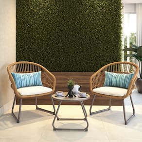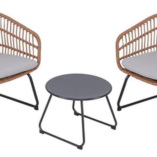 Resumo das Caracteristicas: - Conjunto de moveis para jardim com 3 pecas: 1 mesa e 2 poltronas. - Feito de aco resistente na cor bege. - Mesa de centro redonda com tampo de aco na cor cinza, dimensoes 72x48x48 cm. - Poltronas com assento de tecido de poliester e estrutura de aco e rattan, dimensoes 79x67 cm. - Ideal para areas externas com cobertura e secas. - Montagem simples e facil. - Garantia de 3 anos contra defeitos de fabricacao. - Nao recomendado para areas com maresia ou contato direto com agua." Marca: Não Informado