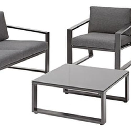 Resumo das principais caracteristicas e especificacoes: - Conjunto para jardim de 4 lugares; - Fabricado em aluminio de alta qualidade para garantir durabilidade e resistencia as intemperies; - Acabamento em cinza lyra para um toque de sofisticacao; - Composto por um sofa, duas poltronas e uma mesa de centro; - Design ergonomico para maximo conforto; - Conjunto leve para facil movimentacao; - Ideal para varias ocasioes, como relaxar, socializar e jantar ao ar livre." Marca: Não Informado