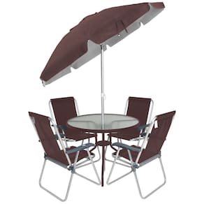Conjunto para Jardim Mesa com Tampo de Vidro e 4 Cadeiras e Ombrellone Noronha Bel Desfrute do melhor em lazer com o Conjunto Noronha de 6 pecas! Inclui uma mesa redonda de centro com tampo de vidro temperado de 5mm e estrutura resistente de aluminio. Voce tambem tera um ombrellone articulado em bagum reforcado, equipado com varetas em fibra de vidro para maior durabilidade. Alem disso, o conjunto conta com 4 cadeiras individuais reclinaveis em 4 posicoes, oferecendo conforto personalizado. Seus encostos e assentos sao feitos de poliester de alta qualidade, revestidos com PVC para facil limpeza, enquanto a estrutura de aluminio garante leveza e resistencia. Com o Conjunto Noronha, seu espaco de lazer sera transformado em um ambiente de relaxamento e estilo incomparaveis!
