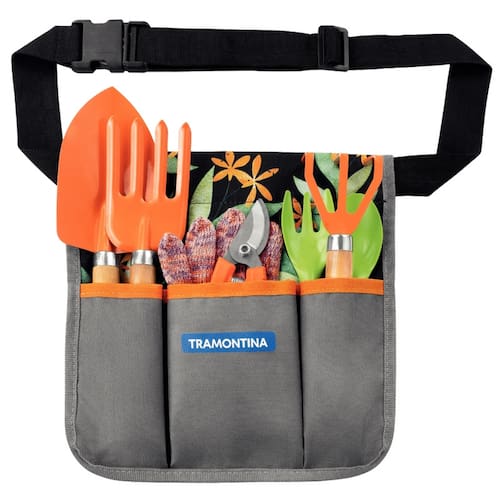 Conjunto para jardinagem Tramontina com cinto 8 peçasO cuidado e a manutenção do seu jardim estarão completos com o conjunto para jardinagem Tramontina com cinto 8 peças. Cada ferramenta possui características únicas para realizar a manutenção do seu jardim. Leves e práticas, elas acompanham uma linda embalagem litografada, perfeita para armazenar o kit de produtos. Cada cantinho ficará bem cuidado com esse conjunto, que pode ser um excelente presente para os amantes de flores e jardins. Composição: 1 pazinha larga (77907/001). 1 ancinho 3 dentes (77909/001). 1 garfo 4 dentes (77915/001). 1 pazinha larga (78107/010). 1 garfinho 3 dentes (78107/030). 1 tesoura de poda (78300/001). 1 par de luvas (78032/001). 1 cinto.