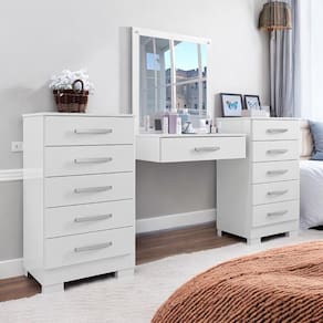Apresentamos o conjunto perfeito para quem busca unir estilo e funcionalidade. Duas cômodas espaçosas e uma penteadeira encantadora!