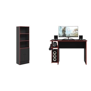 1x Armário para Escritório Gamer com 2 Portas e 5 Prateleiras Preto/Vermelho Largura: 61 Altura: 158.5 Peso: 25 Profundidade: 35.4 Necessita Montagem: Sim