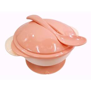 Com um design super fofo e compacto, o conjunto é composto por um pratinho redondo e uma colher em plástico, facilitando também no momento da limpeza, e na parte inferior do pratinho possui uma ventosa de silicone que gruda na mesa para que o pratinho permaneça fixo.