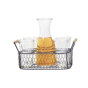 - cor: Suporte: preto Garrafa/copos: transparente
