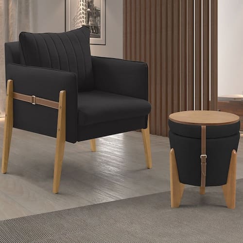 Conjunto para Sala de Estar com Poltrona e Puff Orion Veludo Preto