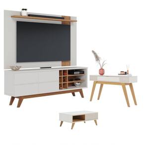 Este Conjunto é uma excelente escolha para quem quer elegância e versatilidade na sala de estar; O Home Diana, que é composto por um rack e um painel, possui um painel que permite acomodar TVs de até 70 polegadas, duas portas, uma prateleira e três nichos, perfeito para manter sua sala organizada e decorada!