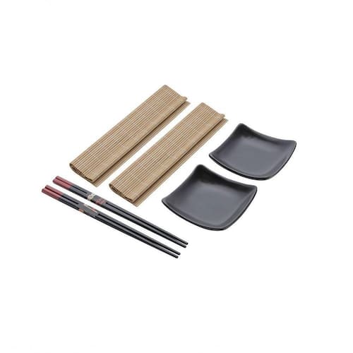 Acompanha o produto: - 01 Conjunto Para Sushi Contendo:02 Esteiras de Bambu - 02 Molheiras de Cerâmica - 02 Pares de Hashi de Bambu. Garantia: - 30 dias contra defeitos de fabricação