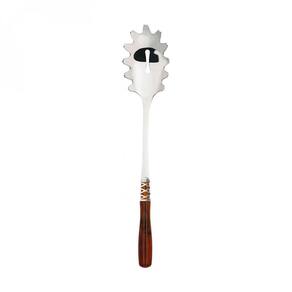 O jogo de pegador de massa e colher para servir da Linha Arianna da Bugatti é composto por um anel cromado trançado inspirado no famoso fio de Ariadne que lhe dá o nome, e um elegante cabo de madrepérola em acrílico colorido.