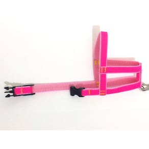 Peitoral confeccionado em tecido de veludo liso e nylon; Presilha com regulagens de tamanho em plastico resistente; Guia em tecido de veludo liso e nylon; Mosquetão médio com trava de segurança; Indicado para cachorros de pequeno e médio porte. Cor: rosa