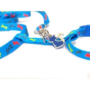 Peitoral confeccionado em tecido de seda estampada; Presilhas em plástico com passadores de ajuste; Acompanha guia de 90 cm em tecido de seda estampada com mosquetão pequeno; Ideal para gatos; Tamanho único. Medidas aproximadas: 12 cm a 22 cm de circunferência abdominal. Cor: azul Uma ótima escolha para passear com seu amigo felino com conforto, estilo e segurança. Marca: Não Informado