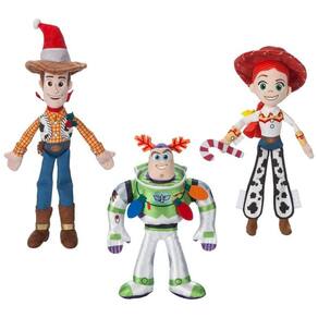 Marca: Disney Store Peso: conjunto total aproximado de 0,9 kg Dimensões individuais: Jessie: altura aproximada 30,5 cm/ Buzz Lightyear: altura aproximada 26,7 cm/ Woody (com chapéu): altura aproximada 33 cm Dimensões da embalagem: cerca de 27,9 cm (A) x 38,1 cm (L) x 12,7 cm (P) Cor: Multicolorida Material: poliéster (externo e interno) Número de peças: 3 pelúcias (Jessie, Buzz Lightyear e Woody) Características: pelúcia detalhada, acessórios natalinos (luzes, chifres, bengala doce, chapéu e azevinho) Indicação etária: Sem restrição (todas as idades)