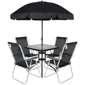 Conjunto Petrópolis para Jardim com Mesa Cadeira e Guarda Sol 86207 Preto BEL