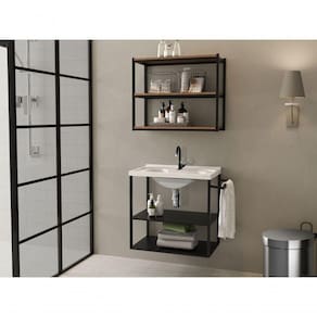 Gabinete Suspenso em Aço Estilo Industrial com Cuba e Porta Toalha