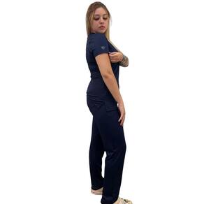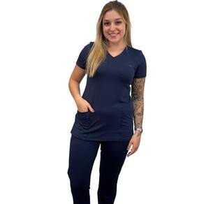 Nosso conjunto de uniforme cirúrgico Scrub AME, com design de pijama, apresenta uma blusa com decote v,dois bolsos frontais e recorte na lateral e cintura reta . Ja a calça com elastico na cintura, estilo confortavel com bolsos frontais e traseiros. Feito com 91% de poliester e 9% de elastano. E o diferencial do Scrub AME é que ele oferece a escolha de usar a blusa mais comprida estilo jaleco ou por dentro da calça.O conjunto scrub feito de 91% poliéster e 9% elastano oferece uma combinação ideal de conforto e durabilidade. O poliéster é conhecido por sua resistência e facilidade de manutenção, além de ser ótimo para manter a forma ao longo do tempo. Já o elastano (também conhecido como spandex ou lycra) proporciona a elasticidade necessária para que o conjunto se ajuste ao corpo com flexibilidade, sem perder a forma. Além disso, a composição de 91% poliéster e 9% elastano também contribui para a ausência de transparência. O poliéster, sendo um material denso, juntamente com o elastano que adiciona um pouco mais de estrutura e esticamento, evita que o tecido fique translúcido, garantindo que o conjunto seja opaco e confortável de usar em diversas situações, sem preocupações com transparências. Marca: Rachele