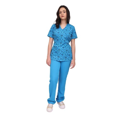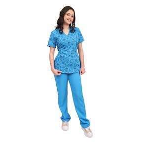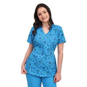 Nosso conjunto de uniforme cirúrgico Scrub Fun, com design de pijama, apresenta uma blusa com decote em V sem transparencia, detalhes recortados, 1 bolso frontal, calça de elastico, cintura alta com bolsos frontais e traseiros. Feito com 96% de poliester e 4% de elastano.Pijama cirúrgico scrub estampado de Two Way é uma peça funcional, porém estilosa, destinada a profissionais de saúde que trabalham com crianças ou em ambientes hospitalares. Geralmente, é confeccionado em tecidos leves e respiráveis, proporcionando conforto para longas horas de trabalho. A estampa é um diferencial importante, muitas vezes trazendo temas infantis, como animais, personagens animados, desenhos coloridos e padrões divertidos, que ajudam a criar um ambiente acolhedor e menos intimidante para as crianças. Marca: Rachele