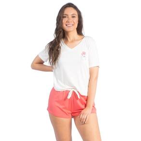 A camisa apresenta um design clássico e descontraído, perfeito para uma sensação de leveza durante o sono. Enquanto isso, o short oferece liberdade de movimento e conforto supremo, tornando este conjunto ideal para noites tranquilas de verão.