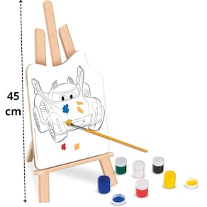 ESPECIFICAÇÕES: - Recomendado a partir de 4 anos - Dimensões da Embalagem (CLA): 48 x 5 x 30 cm - 01 Cavalete em Madeira (45 cm) - 04 Telas em Madeira - 01 Paleta em Madeira - 06 Tintas Guache - 01 Pincel - Marca: Nig Brinquedos