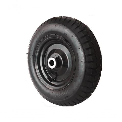 Roda pneumática fabricada com 4 lonas (Ply Rating) e núcleo de aço estampado galvanizado . Proporciona máximo silêncio com alta performance, absorção de choques e proteção à carga.