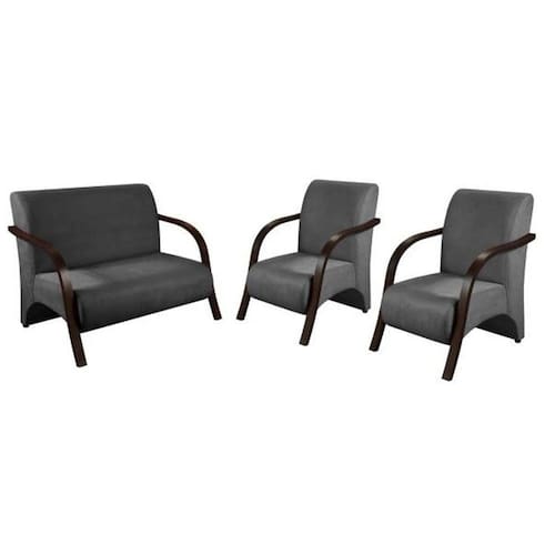 Conjunto Poltrona Decorativa Venus Braço Madeira kit 3 Peças Confortável Sala Suede - Grafite