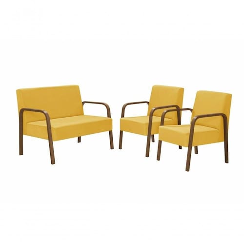 Conjunto Poltrona Luna Braço Madeira D Salla Suede Amarelo