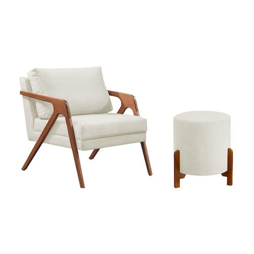 Tipo: Conjunto Modelo: Poltrona Mona e Puff Thor Tecido: Linho Cor: Cru