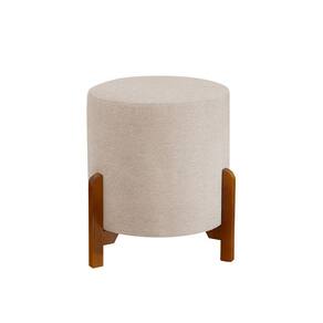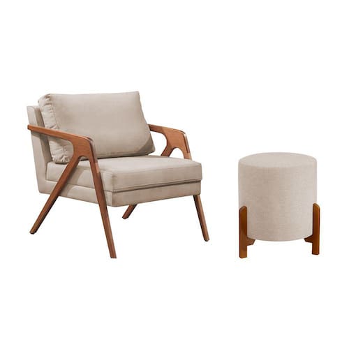 Conjunto Poltrona Mona Decorativa e Puff Thor Estofado Base Madeira Maciça Veludo Bege