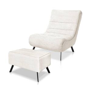 Conjunto Poltrona + Puff Com Pés De Ferro Em Tecido Bouclé Vancouver – Lucadi Off White - Branco