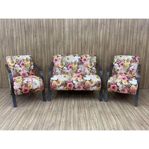 Estrutura:Sua estrutura é com madeira de eucalipto, 100% reflorestada e seca em estufa, os braços e pés de Madeira.