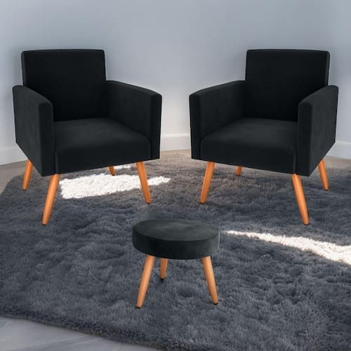 ALTURA DO PRODUTO (CM): 80 | ALTURA DO PRODUTO COM EMBALAGEM (CM): 129 | COMNTO DO PRODUTO (CM): 60 | COMNTO PRODUTO COM EMBALAGEM (CM): 65 | CONTEÚDO DA EMBALAGEM: 2 Poltronas e 1 Puff | CORES DO PRODUTO (FILTRO DE CORES): Preto | COR PREDOMINANTE: Preto | DESCRIÇÃO DO TAMANHO: 80x64x60 cm | É KIT?: Sim | ESTADO DE ORIGEM: PR | INSTRUÇÕES/CUIDADOS: Limpar com pano macio e seco, não utilizar produtos abrasivos | LARGURA DO PRODUTO (CM): 64 | LARGURA PRODUTO COM EMBALAGEM (CM): 65 | MARCA: CasaH | MATERIAL PARA FILTRO: Tecido | MATERIAL PRINCIPAL: Tecido | PESO DO PRODUTO (KG): 34 | PESO PRODUTO COM EMBALAGEM (KG): 34 | PRODUTO: Poltronas e Puff | PRODUTO PRECISA DE MONTAGEM?: Sugerimos a contratação de um montador para a montagem do produto. Não nos responsabilizamos por causadas no ato da montagem. | QUANTIDADES DE CAIXAS DE EMBALAGEM: 3