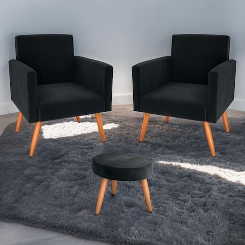 Conjunto de Poltronas e Puff é o ápice do conforto e do estilo. Com um design unico, combina elegância e funcionalidade, tornando-se o complemento perfeito para qualquer ambiente.