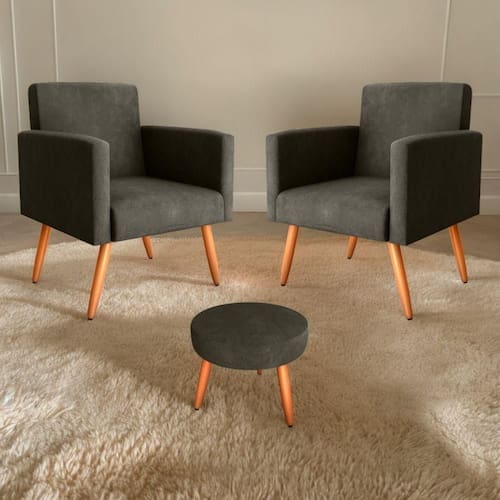 Conjunto de Poltronas e Puff é o ápice do conforto e do estilo. Com um design unico, combinam elegância e funcionalidade, tornando-se o complemento perfeito para qualquer ambiente.