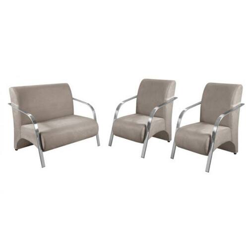 Conjunto Poltronas Venus Braços em Alumínio 1 Namoradeira, 2 de um Lugar Suede - Bege Médio