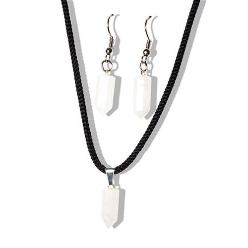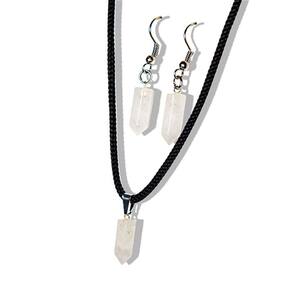 Conjunto Pontinha Colar e Brinco Quartzo Leitoso Prateado
