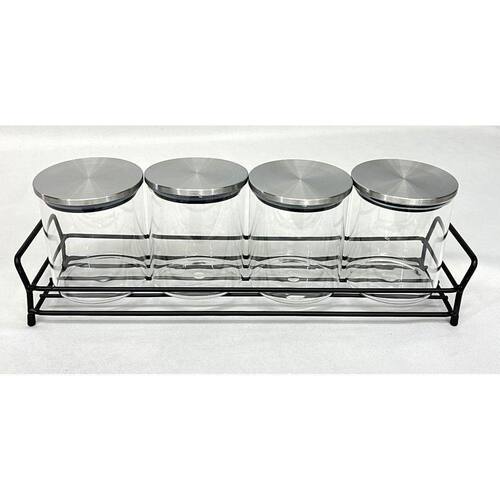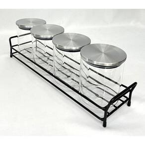 Kit Porta Condimentos 4 Unidades Com Suporte Ferro Dynasty