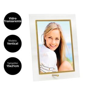 Imortalize seus momentos especiais com o Porta-Retrato em Vidro com Borda Dourada. Com um design moderno e minimalista, este modelo vertical de 15x20cm e 10x15cm é perfeito para destacar suas fotografias de forma elegante, tornando-se um item decorativo de bom gosto para qualquer ambiente.