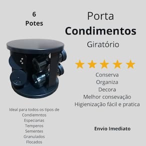 Conjunto de Porta Temperos com Tampa e Suporte Giratório 6 potes de vidro Porta Condimentos Giratório Redondo com 6 Potes de Vidro - Organização e Praticidade na Cozinha Mantenha seus temperos organizados e sempre à mão com o Porta Condimentos Giratório Redondo. Com design inovador e 6 potes de vidro, é a solução perfeita para quem deseja praticidade, elegância e otimização de espaço. Confira suas principais características: