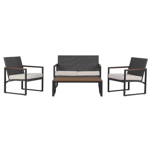 CARACTERÍSTICAS: Medidas da mesa - (AxLxP) 56x110x35 cm. Medidas da poltrona - (AxLxP) 81x70x63 cm. Medidas do sofá - (AxLxP) 81x117x70 cm.