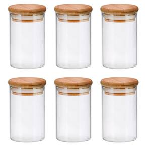 Conjunto Pote Hermético Boro Tampa Bambu 110ml 6 Peças Este pote hermético de vidro possui fechamento de encaixe em bambo, permitindo uma maior durabilidade do seu alimento. Ideal para acondicionar alimentos, sem que se altere a cor ou que o cheiro fique no produto. Este produto manterá o sabor e aroma dos alimentos e sua estrutura é mais resistente.