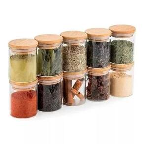 Conjunto Pote Hermético Boro Tampa Bambu 110ml 6 Peças Este pote hermético de vidro possui fechamento de encaixe em bambo, permitindo uma maior durabilidade do seu alimento. Ideal para acondicionar alimentos, sem que se altere a cor ou que o cheiro fique no produto. Este produto manterá o sabor e aroma dos alimentos e sua estrutura é mais resistente.