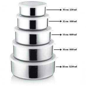 01 Conjunto Com 5 Tigelas de Aço Inox Com Tampa