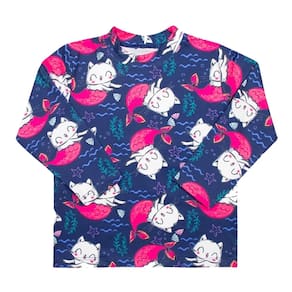 Deixe sua bebê protegida e estilosa com este conjunto de praia encantador! Composto por blusa de manga longa estampada de simpáticas gatinhas sereias, calcinha tapa fralda e chapéu combinando, esse kit é perfeito para dias de sol. Possui proteção UV 50+ para máxima segurança contra os raios solares. O chapéu possui aba interna lisa, na mesma cor da calcinha, garantindo um visual harmonioso. Confortável, prático e essencial para a diversão à beira-mar!