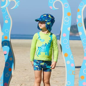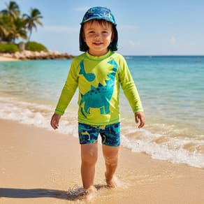 O Conjunto Praia Infantil menino 3 peças da coleção Dino Floresta com Boné da Tip Top possui proteção solar FPS 50+ permanente, é super leve, confortável e seguro, além de lindo e estiloso. É o conjunto de banho que o seu pimpolhinho precisa para curtir a praia ou a piscina com toda a proteção, sem perder a liberdade dos movimentos.
