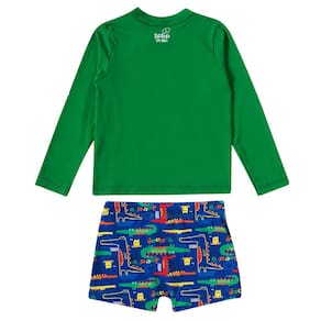 O Conjunto Praia Infantil masculino 3 peças Turma do Jacaré Mergulhador Verde com Boné da Tip Top possui proteção solar FPS 50+ permanente, é super leve, confortável e seguro, além de lindo e estiloso. É o conjunto de banho que o seu pimpolhinho precisa para curtir a praia ou a piscina com toda a proteção, sem perder a liberdade dos movimentos.